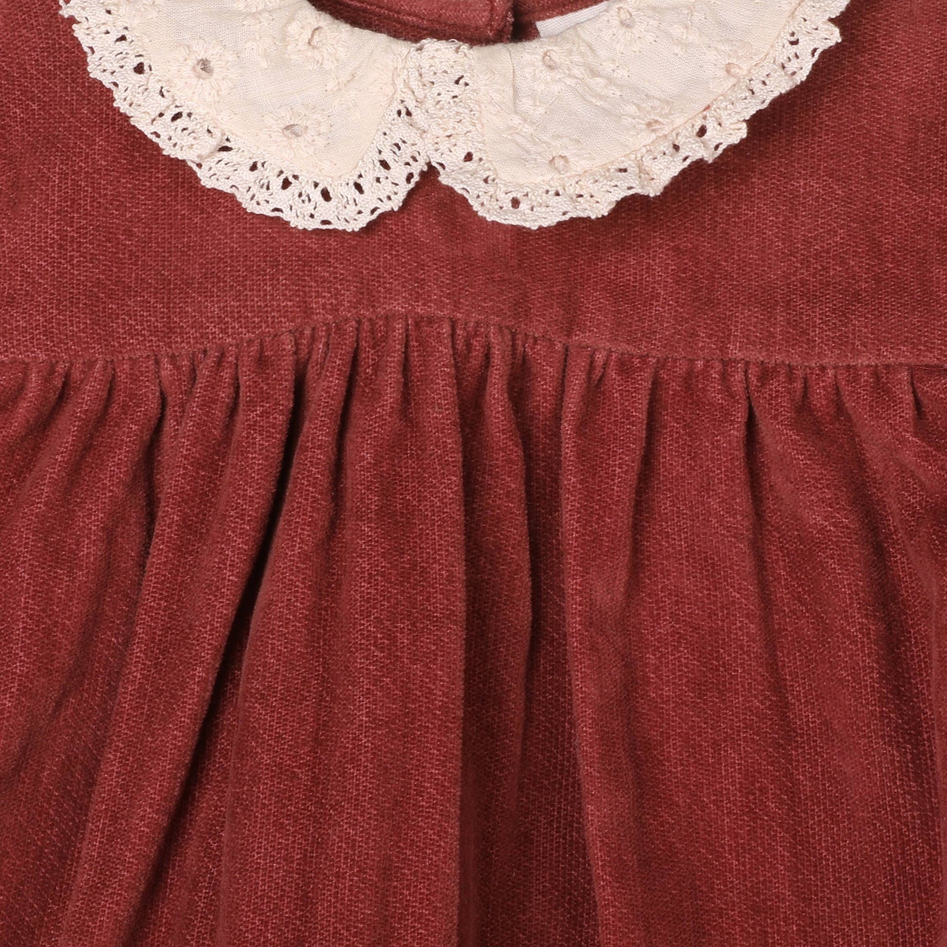 Lace Collar Velvet Baby Girl Dress & Bloomer Set (Organic): Apple Butter / 3-6M